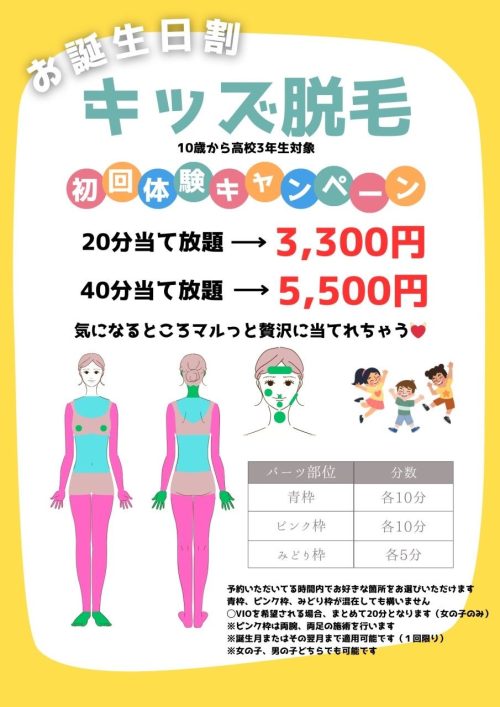 キッズ脱毛の初回体験にはぜひ【お誕生日割】をご利用ください☺️